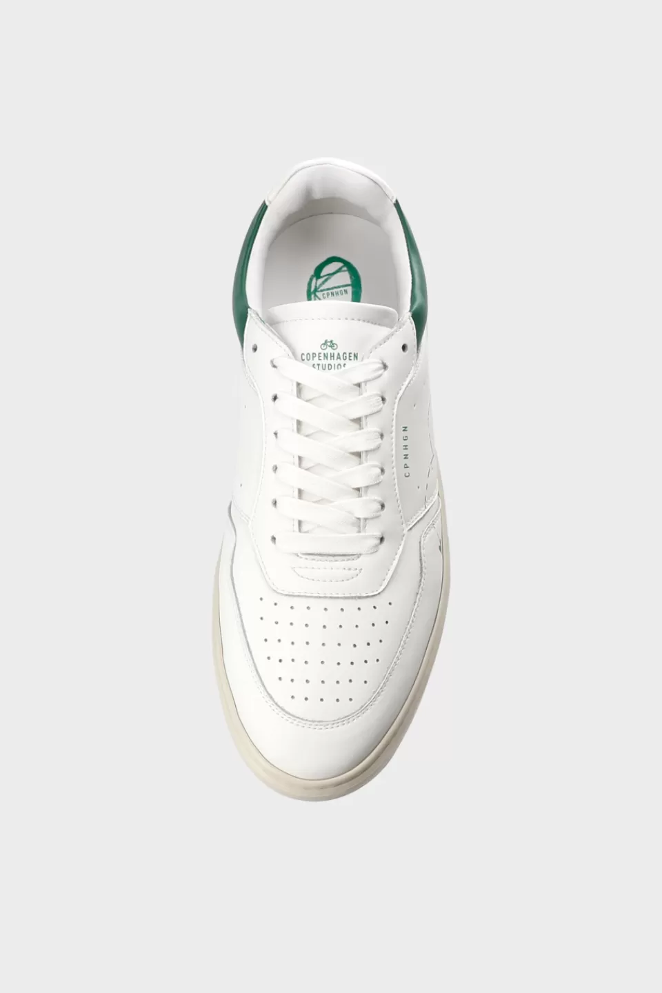 In Weiß & Grün. Low-top Sneaker aus Glattleder. Retro-Silhouette. Schnürung vorne. Mit fein gezeichneten Details wie Tennisschlägern, Tennisbällen, einer Erdbeere, dem Schriftzug ALL ENGLAND und Lochmustern. Logo auf der Schuhzunge und an der Außenseite. Runde Kappe. Leichte Plateausohle mit Branding hinten und an der Unterseite.