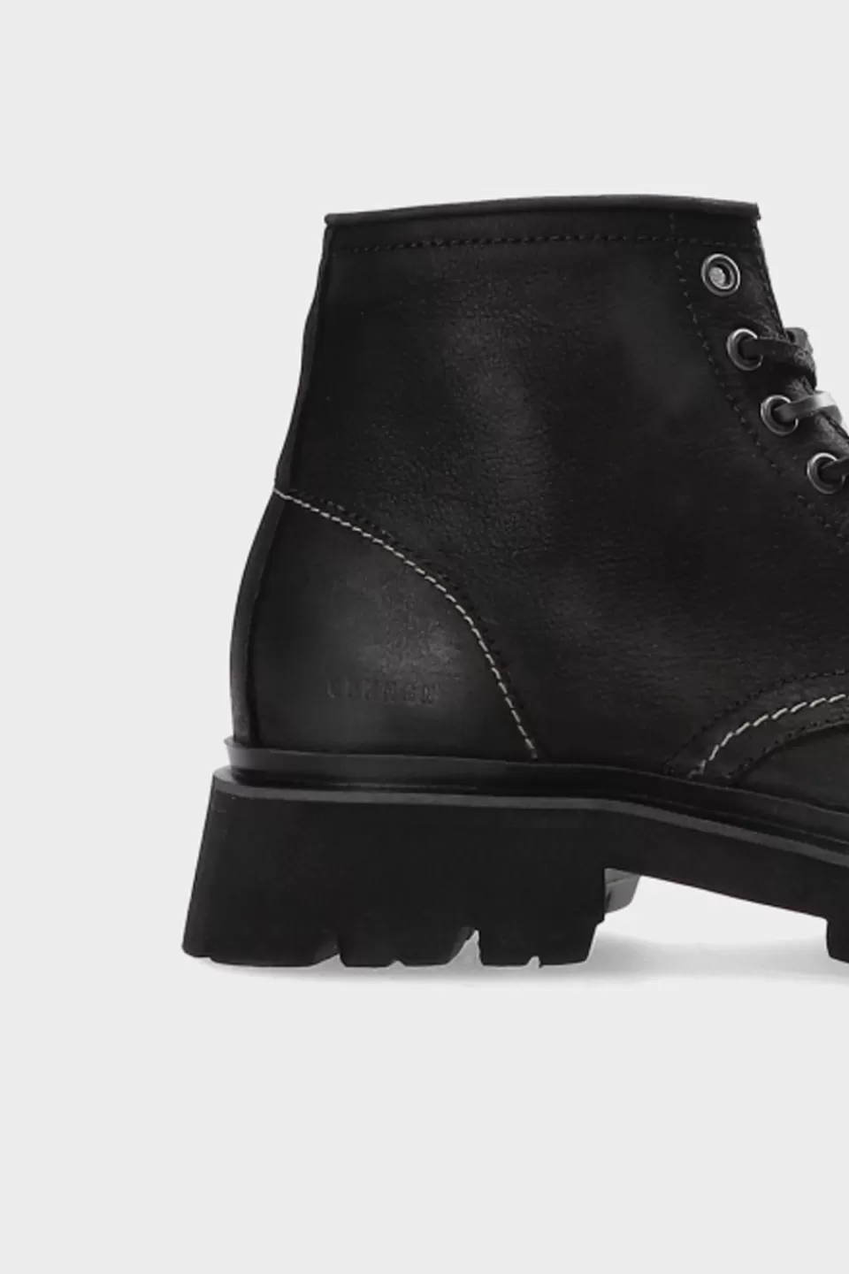 In Schwarz. Knöchelhohe Schnürstiefel aus gewachstem Nubukleder. Von Trekking-Schuhen inspirierte Silhouette. Minimalistische Elemente mit farblich abgesetzten Nähten und Stehsaumdetail. Logo an der Außenseite. Schnürung vorne. Leicht zulaufende Zehenpartie. Sportliche Sohle mit grobem Profil und Mudguard. Sportliche Schnürer für jeden Tag.