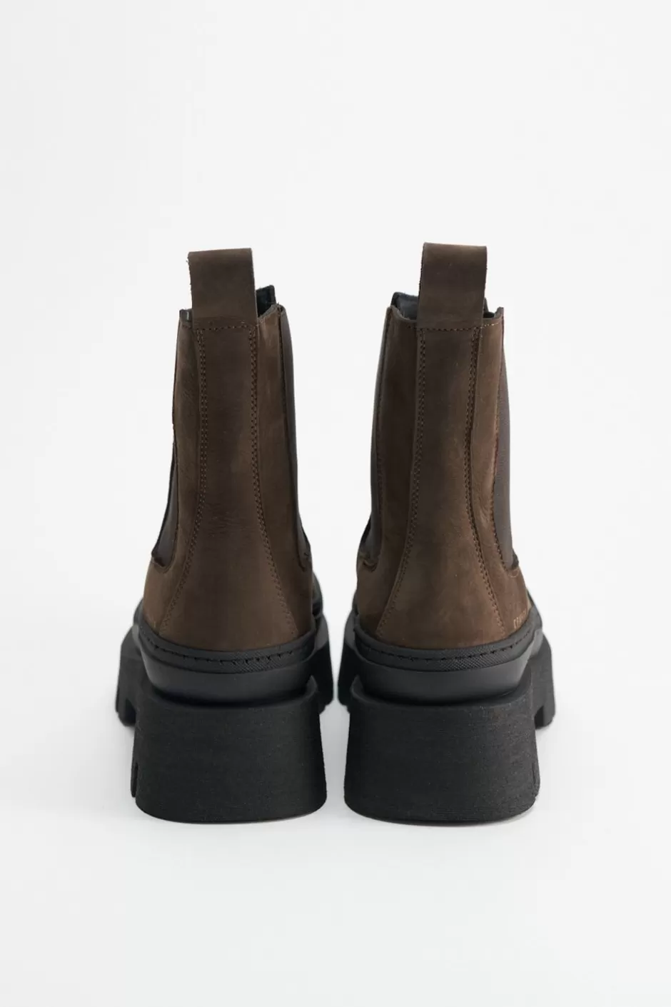 In Bruin. Chelsealaarzen Gemaakt Van Zacht Nubuckleer. Enkelhoog Chelsea-Silhouet. Ronde Dop. Elastische Inzetstukken. Trek De Lus Aan De Schacht. Goudkleurig Logo Aan De Buitenkant. Toon Op Toon, De Ideale Metgezel Voor Koele Herfstdagen.Onze Schoenen Zijn Ontworpen In Kopenhagen En Vervaardigd In Europa. Het Leer Komt Uit Geselecteerde, Door Een Familie Gerunde Fabrieken In Italië.